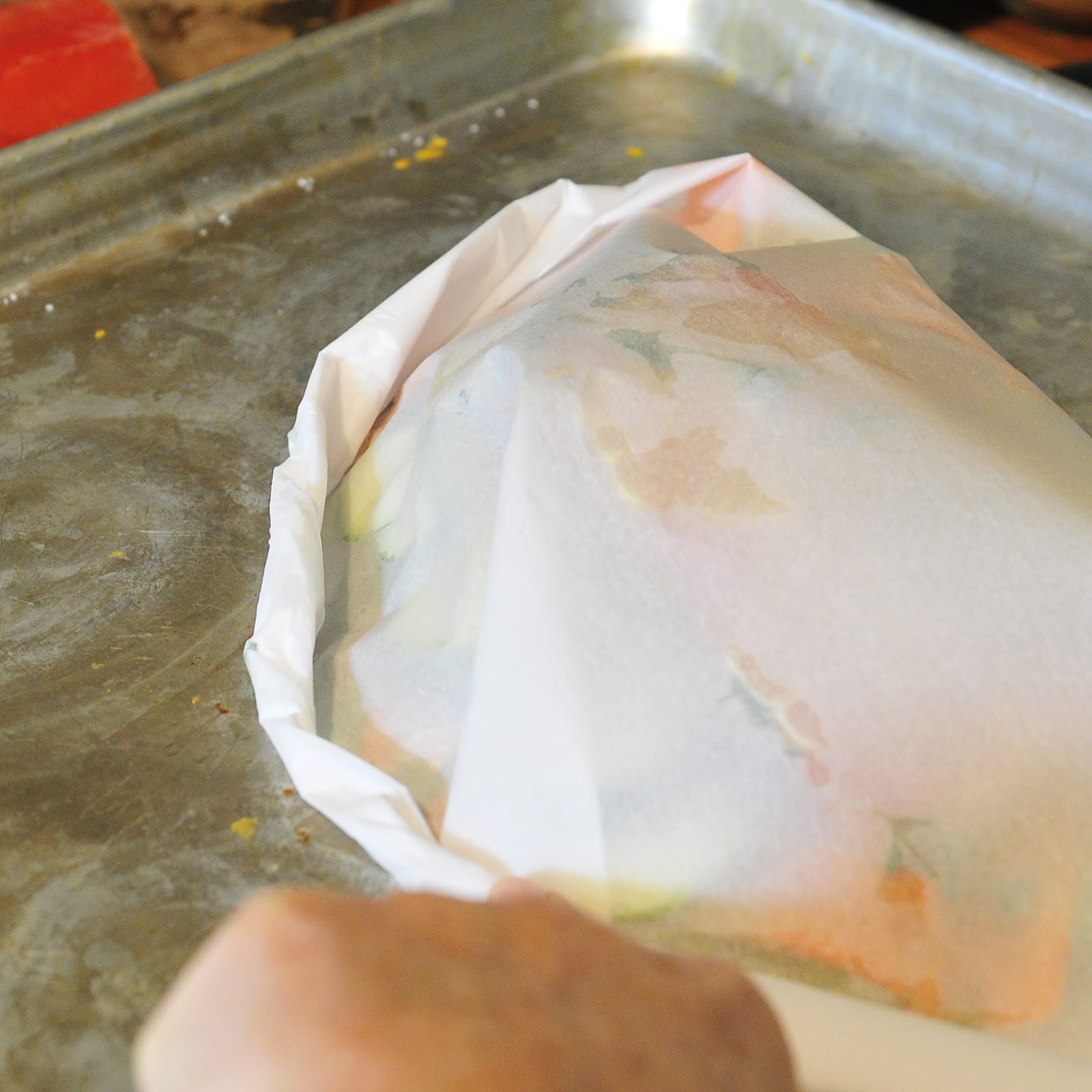 28. Love love baking salmon and even other fish in parchment paper. I never even thought of adding the oranges etc the way you did it. Thank you for your pictures they gave me an idea. By the way your shots are very pretty. =)